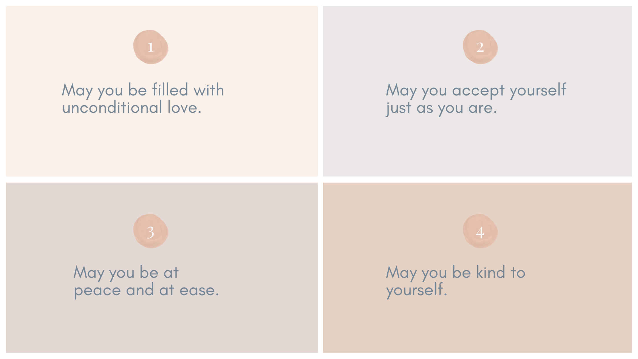 Helpful for lovingkindness meditation but also just helpful to know in general. It’s great to have this list as a go to in your back pocket next time you need a boost of support!