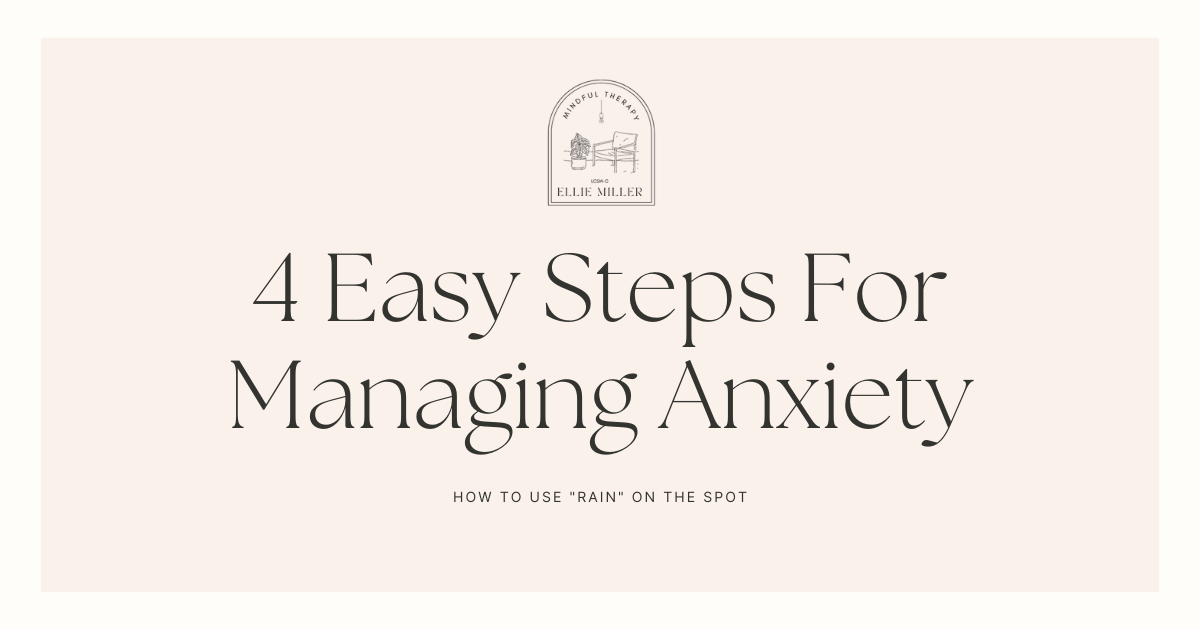 That’s where RAIN comes in. RAIN is a 4 step, easy to use process that helps you work with difficult feelings. It’s my go-to tool when anxiety hits, because it’s so dang easy to use and it really helps.