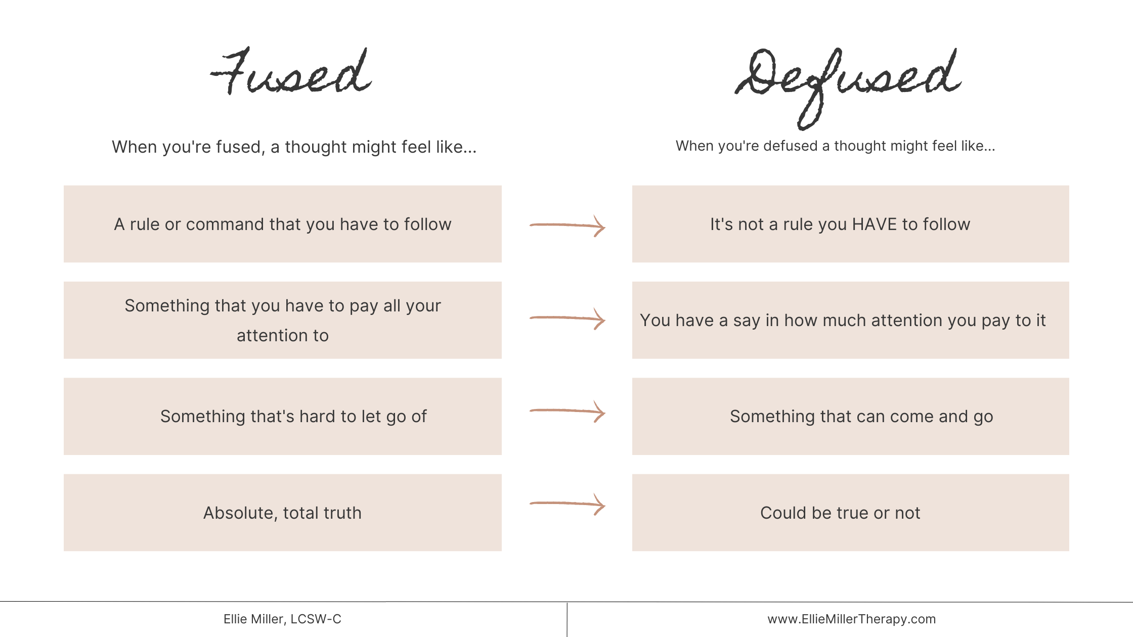 When you’re fused, your thoughts are pulling you around, they feel like absolute truth, there’s a lack of perspective that helps you step back and realize thoughts are just thoughts.